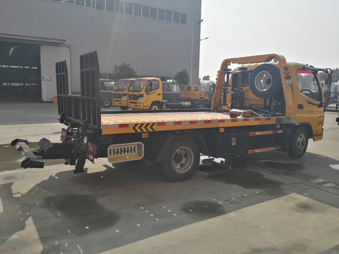 新款藍牌清障車:采用佛山海戰(zhàn)力油缸,英國赫萊特原裝進口密封圈,意大利海德六聯(lián)多路閥,平衡閥。3P1式沖壓式平板,板上開孔,板長4.2米,液壓翻轉尾板1米長,采用加強型后翻轉尾板,翻板開孔,翻板和平板連接的地方裝五個合頁,常規(guī)托舉裝置,平板可承載3噸以內的重物,此車采用雙側聯(lián)動操作裝置,鐵質擋泥板,配備1個40KN液壓絞盤(25米鋼絲繩),新款4根捆綁帶,鏈鉤1條, 2個小車,一個洗手箱,一個工具箱,加裝前配重。
